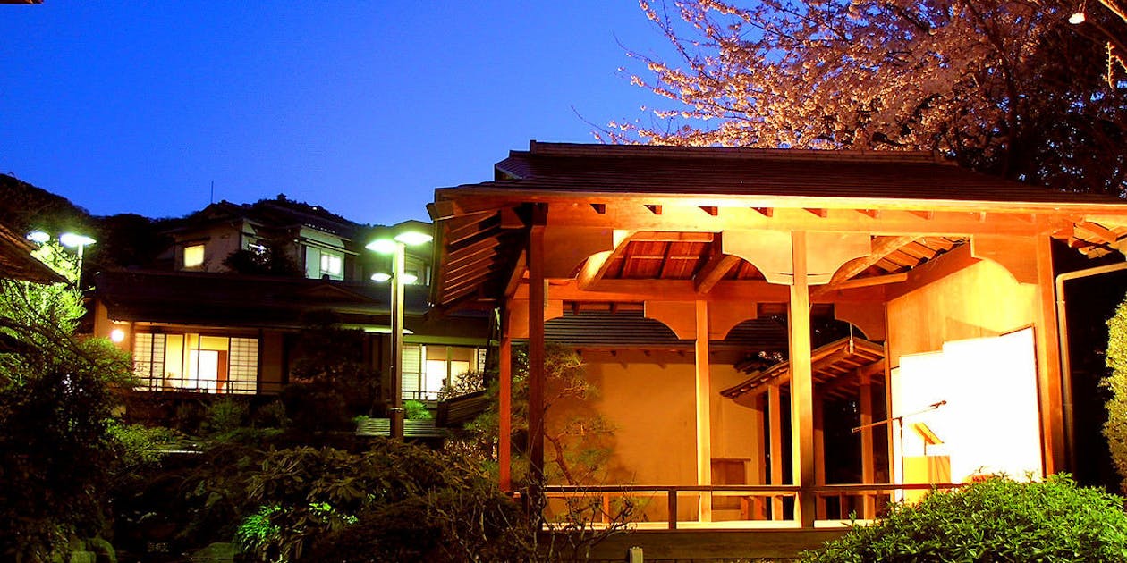 敷地内に広がる日本庭園は、造園界で名高い斎藤一夫博士による監修。木材を生かした数寄屋造り、木造建築の離れなど和の趣を大切にしています。温泉大浴場は、熱海市街の向こうに相模湾を見渡せる展望風呂。貴賓室・離れ・特別客室では温泉掛け流しの内風呂を利用できます。