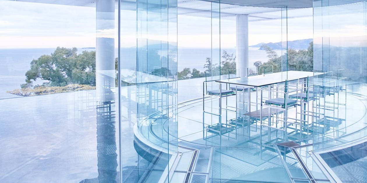 「ATAMI 海峯楼」は、熱海の高台に位置する全4室のスモールラグジュアリーリゾートです。館内のいたるところに隈研吾氏の作品〈水とガラス〉をテーマにした演出が施され、建築の魅力がつまった非日常空間となっています。