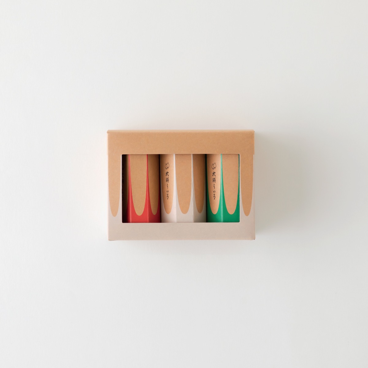 ウイロバーには、さくら、くろ、しろ、ないろ、まっちゃの5つの代表的な味があり、2、3口で食べられるサイズのういろが、クラフト紙の箱に5本セットとして詰められています。