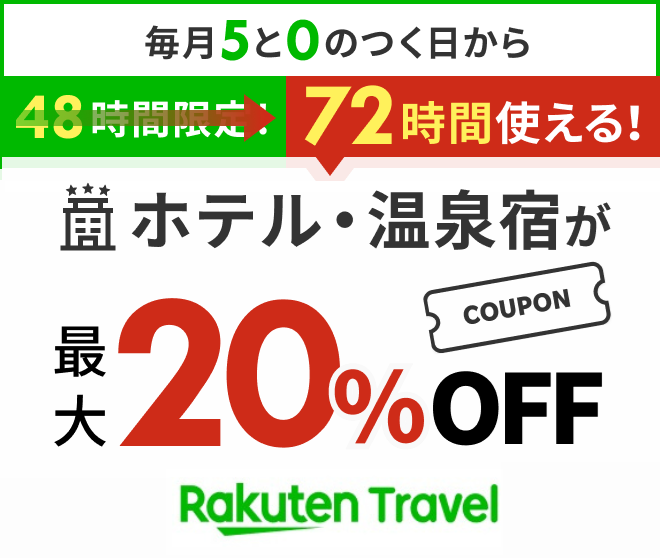 CHECK!▶【楽天トラベル|毎月5と0のつく日から48時間限定!】
