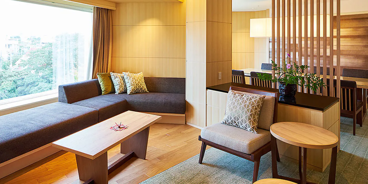 伝統的な日本の住居からインスピレーションを得てデザインされた館内は、和の素材をラグジュアリーに配した空間となっており、客室の大きな窓からは一面に広がるパノラミックな東京の景色を眺めることができます。